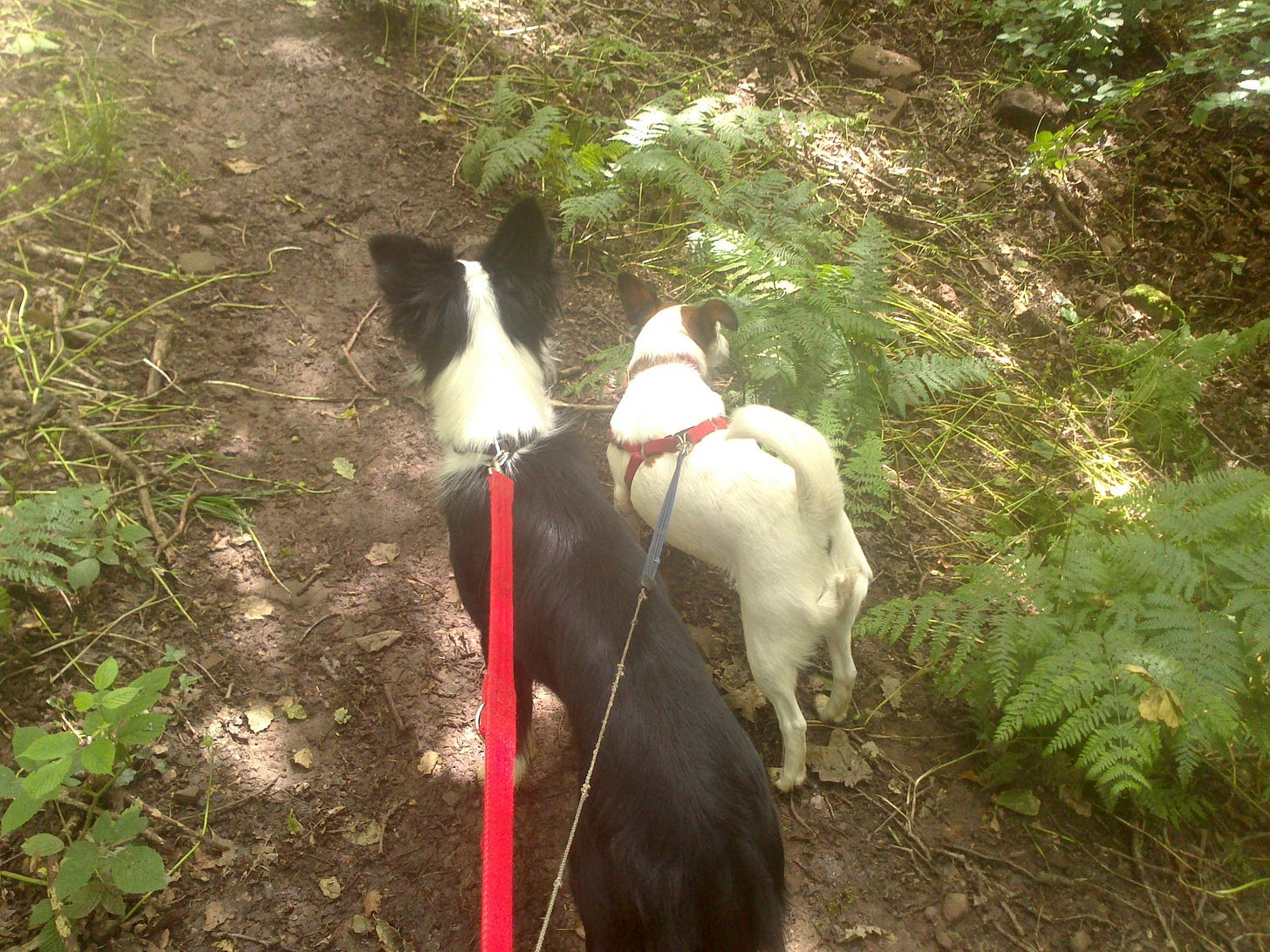 Happy buddies, Dilly and Amy, on a walk in the Forest of Dean, Gloucestershire. A special heart memory.