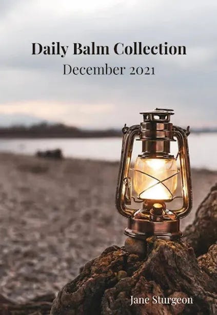 In our world, crammed with information and activity, you may feel the need for some respite. I created the Daily Balm messages to flow soothing energy and kindness into your daily round and am now gathering them into monthly collections, and this one is from December 2021.
